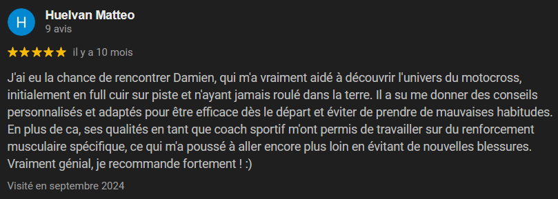Je suis Damien, coach diplômé spécialisé dans le motocross.